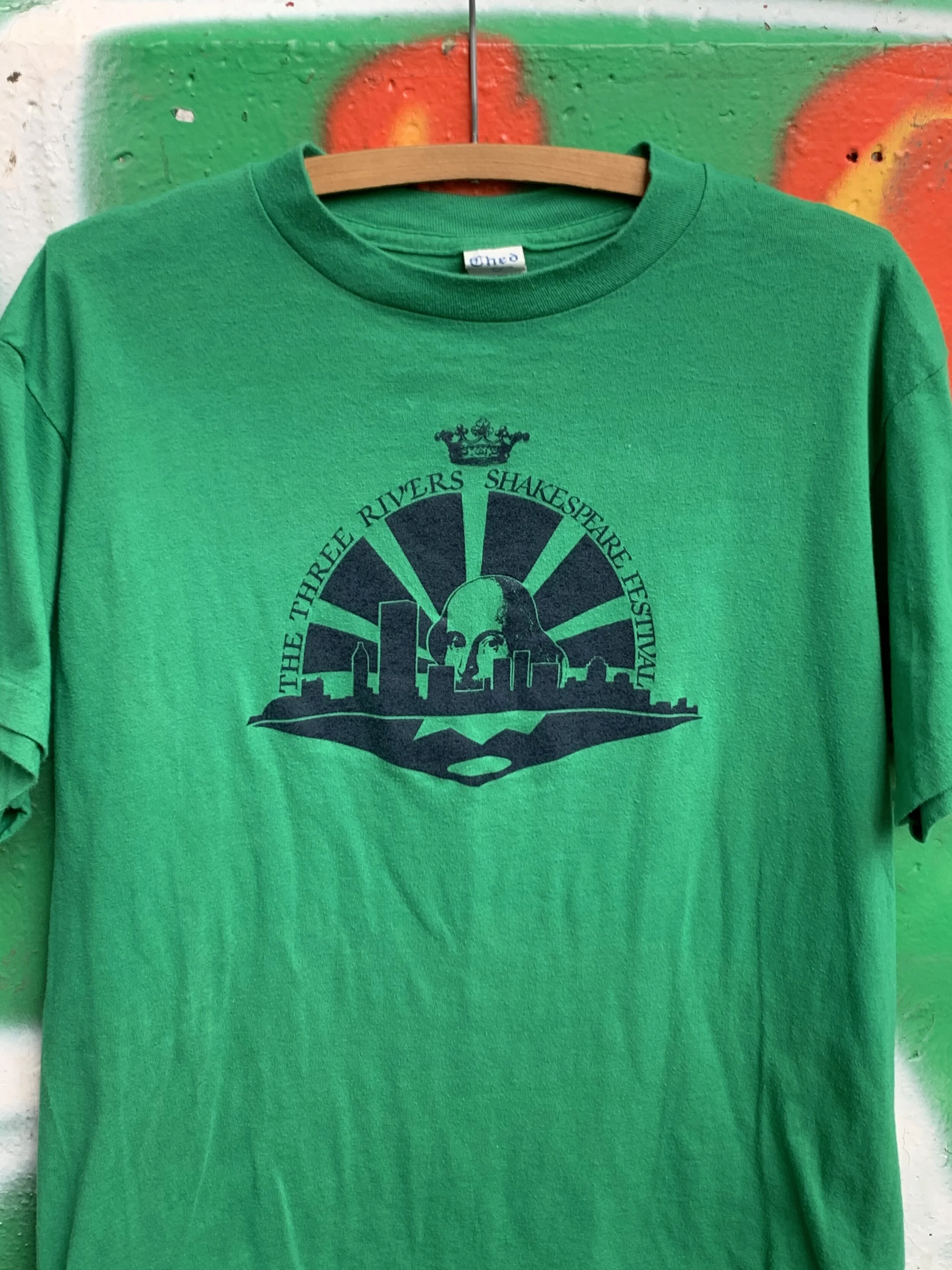 Shop › 1980s Pittsburgh Three Rivers Shakespeare Festival Tee Size XL Image 1 of 5 Image 2 of 5 Image 3 of 5 Image 4 of 5 Image 5 of 5 1980s Pittsburgh Three Rivers Shakespeare Festival Tee Size XL $26.00 20.5x27 Tagged XL fits like a Large. Add To Cart Added! 20.5x27 Tagged XL fits like a Large.
