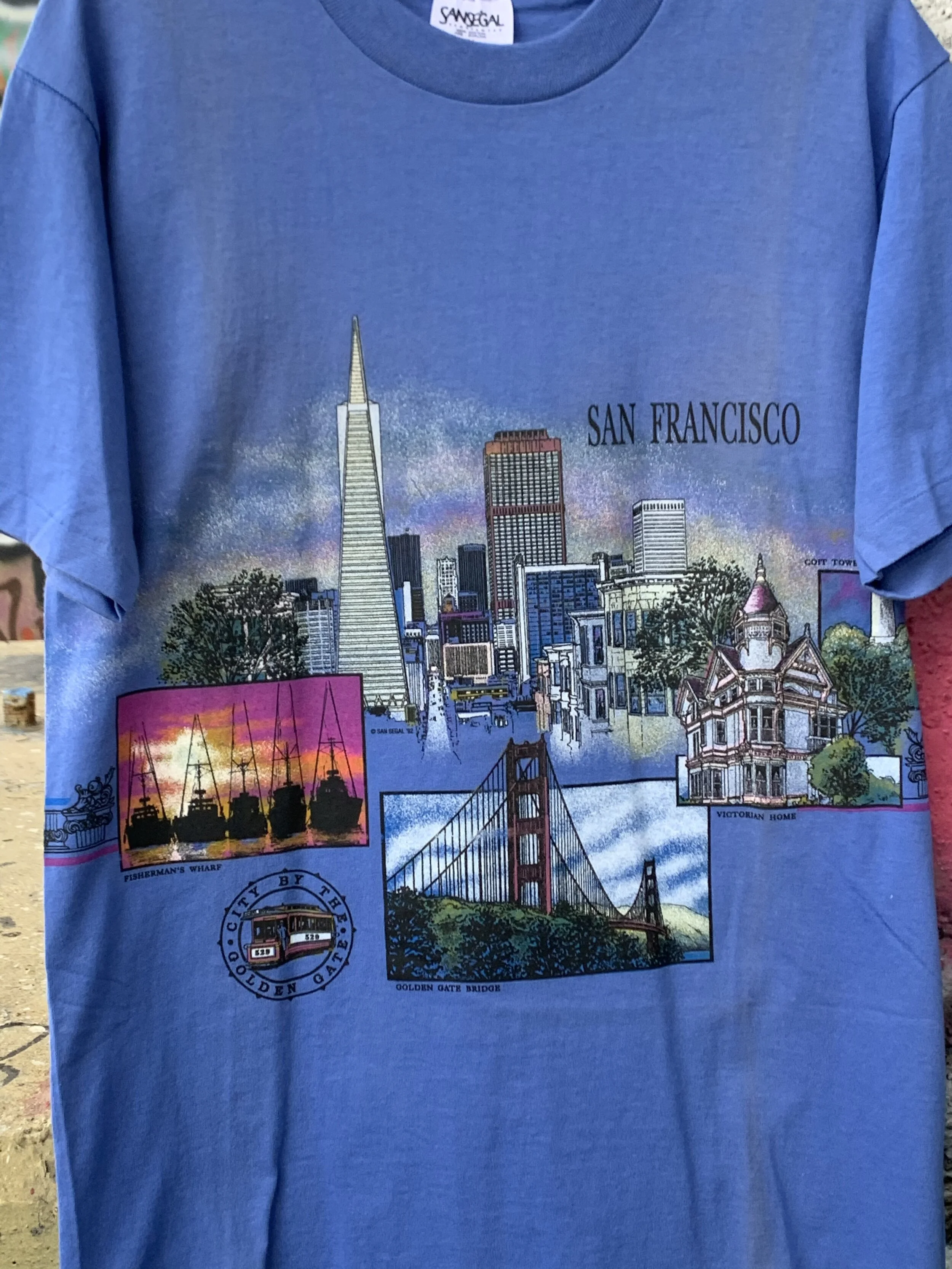 Shop › 1990s San Francisco Tee Size Medium Image 1 of 5 Image 2 of 5 Image 3 of 5 Image 4 of 5 Image 5 of 5 1990s San Francisco Tee Size Medium $17.00 18.5x28.5 Add To Cart Added! 18.5x28.5