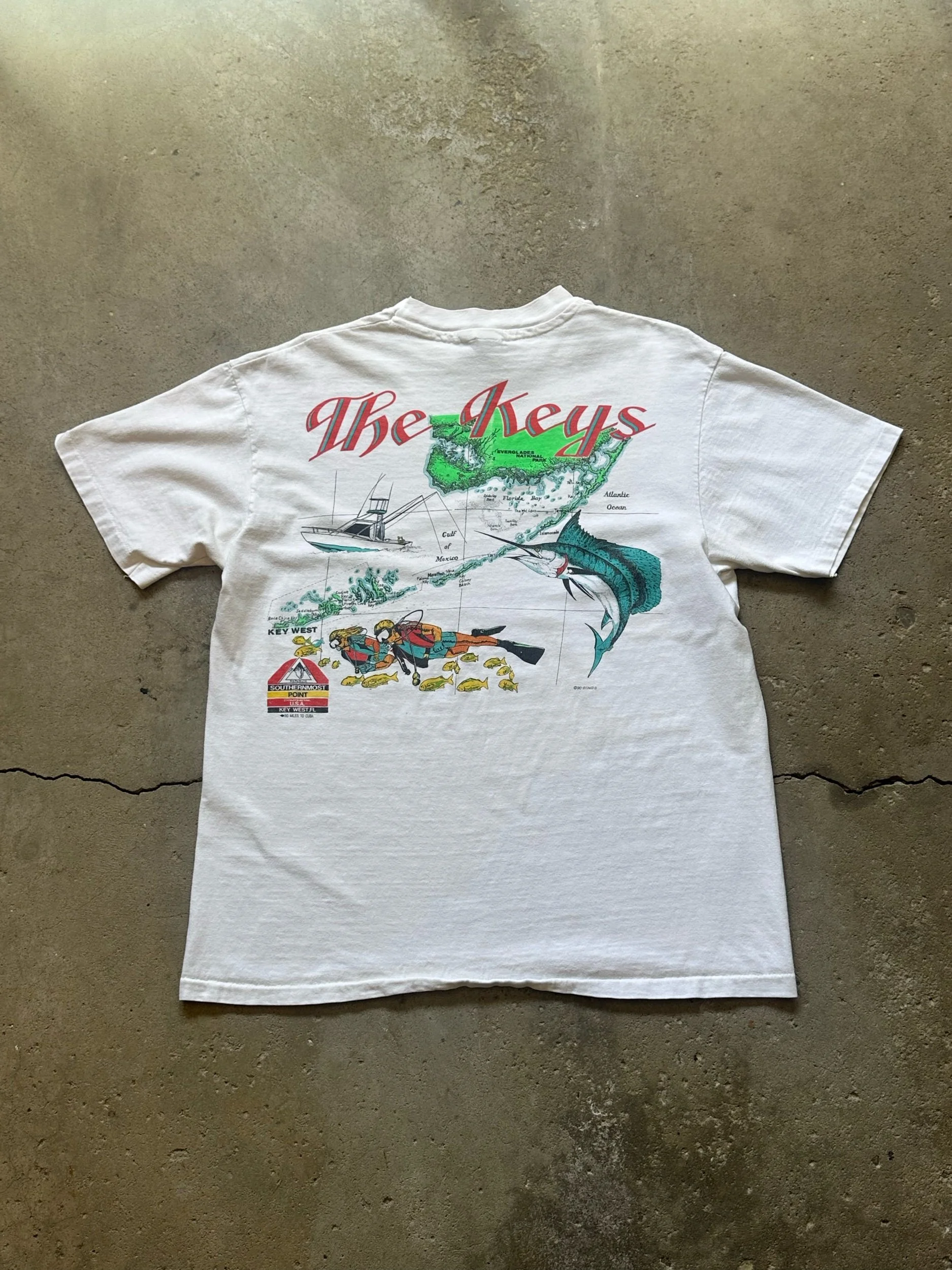 Shop › 1990s Key West Florida Divers & Fishermen Tee Size Large Image 1 of 5 Image 2 of 5 Image 3 of 5 Image 4 of 5 Image 5 of 5 1990s Key West Florida Divers & Fishermen Tee Size Large $18.00 sold out 21x26Heavily worn. Stains and pin holes on front. Armpit & neck yellowing. Sold Out Added! 21x26Heavily worn. Stains and pin holes on front. Armpit & neck yellowing.