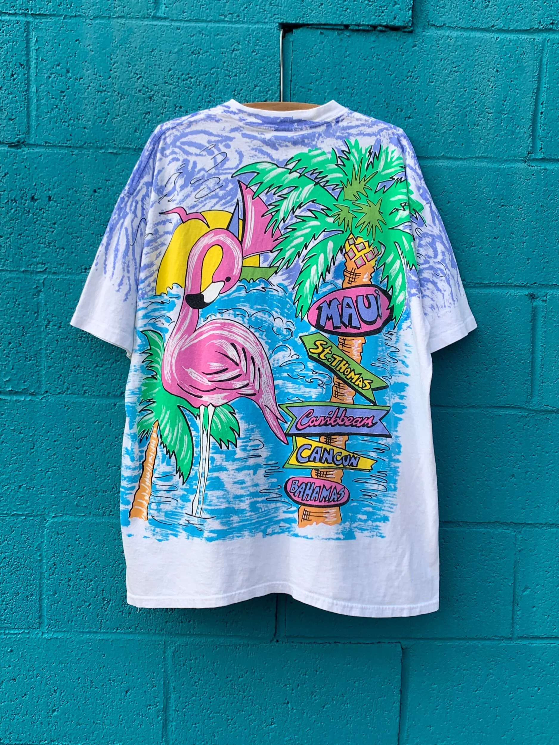 Shop › 1990s Flamingo AOP Tee Size XL Image 1 of 4 Image 2 of 4 Image 3 of 4 Image 4 of 4 1990s Flamingo AOP Tee Size XL $45.00 sold out 25.5x31 Tag reads one size fits all but it fits like an XL Sold Out Added! 25.5x31 Tag reads one size fits all but it fits like an XL