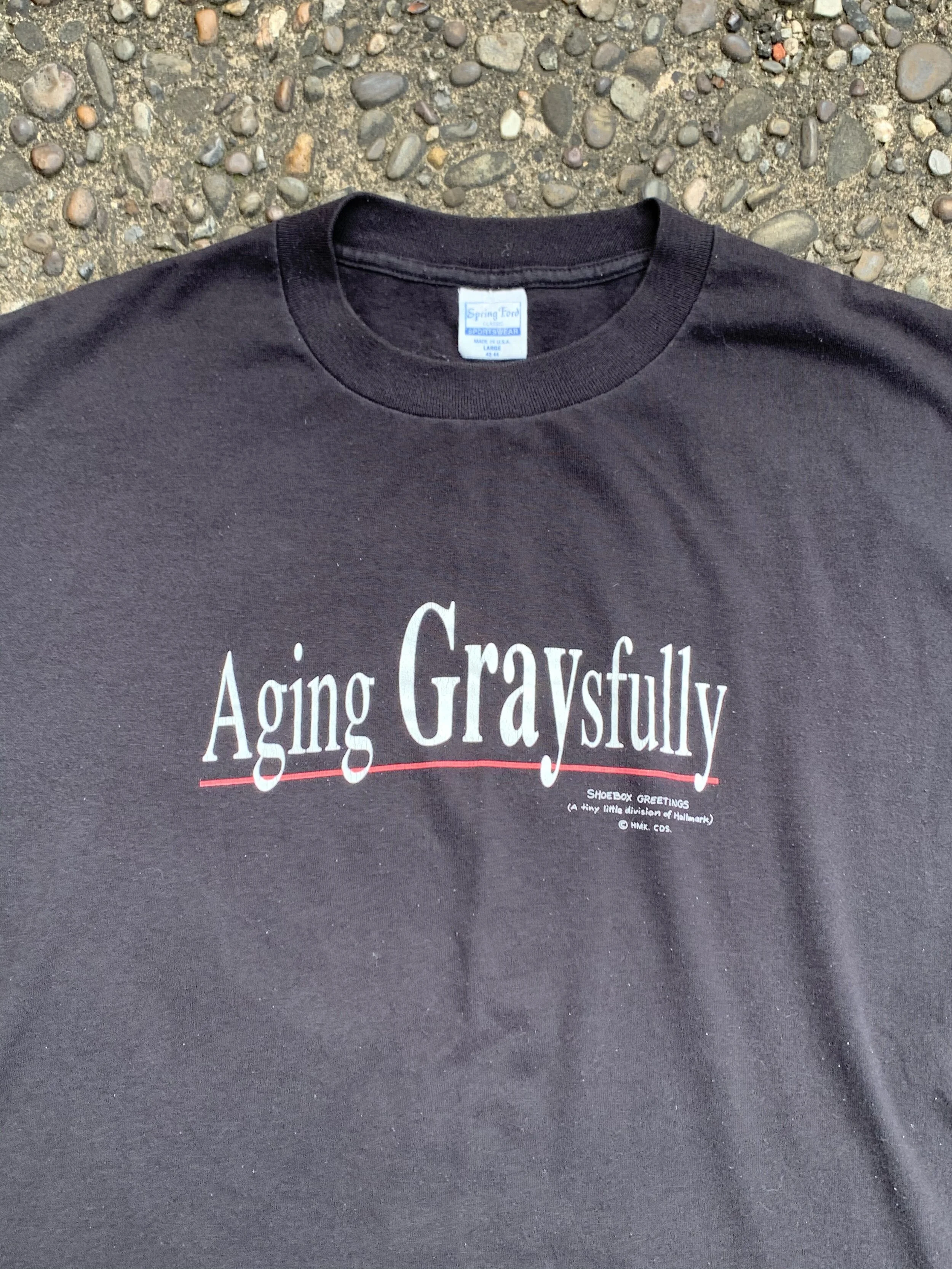 Shop › 1980s Aging GRAYsfully Tee Size Large Image 1 of 4 Image 2 of 4 Image 3 of 4 Image 4 of 4 1980s Aging GRAYsfully Tee Size Large $14.00 22.5x28 Add To Cart Added! 22.5x28